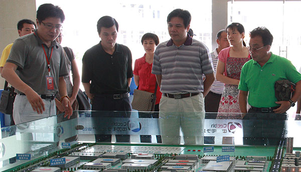 劉慶強(qiáng)局長(zhǎng)一行在展廳聽(tīng)取了園區(qū)發(fā)展情況的介紹,并參觀了長(zhǎng)城能源及國(guó)鈺電子生產(chǎn)車間,詳細(xì)了解了企業(yè)生產(chǎn)工藝和市場(chǎng)開(kāi)拓等情況。在北部灣電子信息科技企業(yè)孵化器,劉局長(zhǎng)一行饒有興致地參觀了孵化器企業(yè)展品,并與企業(yè)的員工親切交談,了解企業(yè)在孵化器的發(fā)展情況。劉局長(zhǎng)表示中電北海產(chǎn)業(yè)園、北海市科技局共同打造孵化器,所取得的先進(jìn)經(jīng)驗(yàn)值得學(xué)習(xí)研究,兩市的科技部門(mén)要加強(qiáng)溝通,互相借鑒提高。
