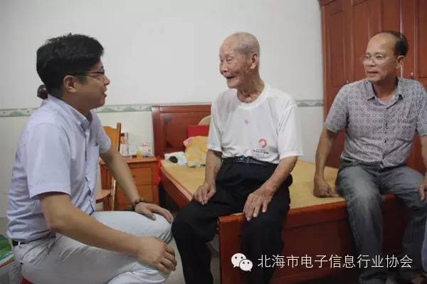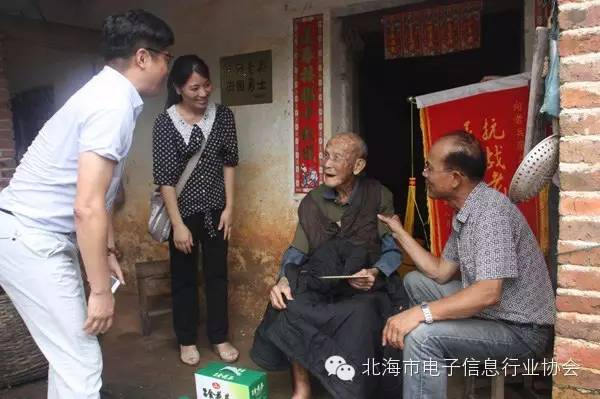 2015年8月15日,在這抗日戰(zhàn)爭(zhēng)勝利70周年之際,北海市電子信息行業(yè)協(xié)會(huì)與民革北海市委會(huì)聯(lián)合探望了三位抗戰(zhàn)老兵,送上慰問金與慰問品。大家傾聽老兵講述那段槍林彈雨的抗戰(zhàn)經(jīng)歷,分享來之不易的和平發(fā)展成果,打著拍子為老兵獻(xiàn)唱革命歌曲。
