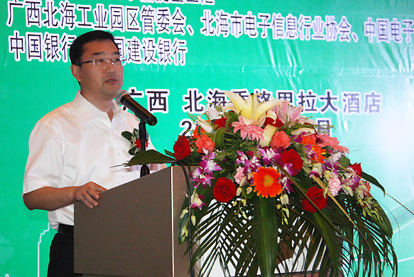' 作為本次論壇邀請的演講嘉賓,中國電子集團(tuán)控股有限公司副總經(jīng)理、北海市電子信息行業(yè)協(xié)會會長賀海華在論壇上做了題為“招商扶商 合作共贏 助力北海電子信息產(chǎn)業(yè)發(fā)展”的主題演講。賀海華會長向與會嘉賓介紹了北海市電子信息行業(yè)協(xié)會的基本情況和開展的重點(diǎn)工作,并分享了作為會長單位的中國電子北海產(chǎn)業(yè)園在過去幾年來,搭建平臺、招商扶商,助力實(shí)現(xiàn)了北海電子信息產(chǎn)業(yè)跨越式發(fā)展。未來,協(xié)會及會長單位將繼續(xù)完善產(chǎn)業(yè)發(fā)展環(huán)境,搭建政企、銀企等多方溝通平臺,合作共贏,助力北海千億元電子信息產(chǎn)業(yè)發(fā)展。