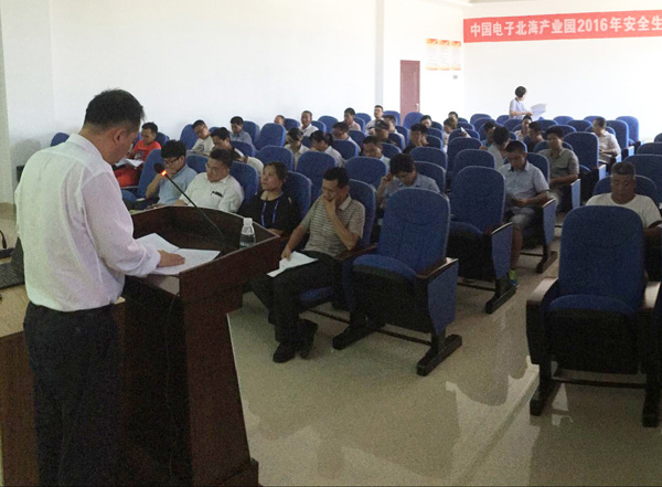 2016年6月3日下午,以“強(qiáng)化安全發(fā)展觀念,提升全民安全素質(zhì)”為主題的中國(guó)電子北海產(chǎn)業(yè)園2016年安全生產(chǎn)動(dòng)員大會(huì)在園區(qū)職工之家舉行,21家入園企業(yè)50余人參加了會(huì)議。